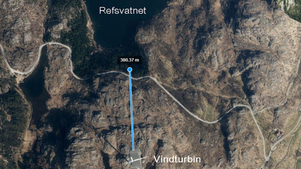 De enorme rotorbladene på vindturbinene, som er laget av glassfiber, er utsatt vind, regn, sol, snø og hagl. Dette fører til at store mengder mikroplast slites av rotorbladene, og mikroplasten virvles så opp i luften. Dermed blir drikkevannet, som ligger i nærheten av vindmøllen på kartet, utsatt. Mikroplast er selvsagt noe vi ikke ønsker oss i drikkevannet vårt.