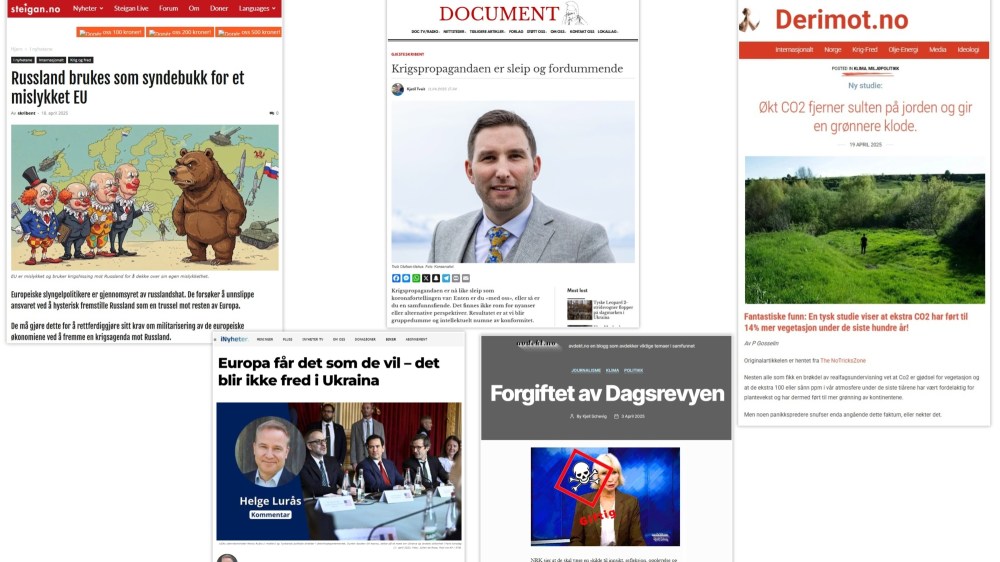 Steigan.no, Derimot.no, iNyheter.no, Document.no og Avdekt.no framstiller seg som folkets forsvarere. Men de bidrar til å spre feilinformasjon og et splittet samfunn. De gjør det vanskeligere å skille mellom ekte nyheter og ideologisk påvirkning.